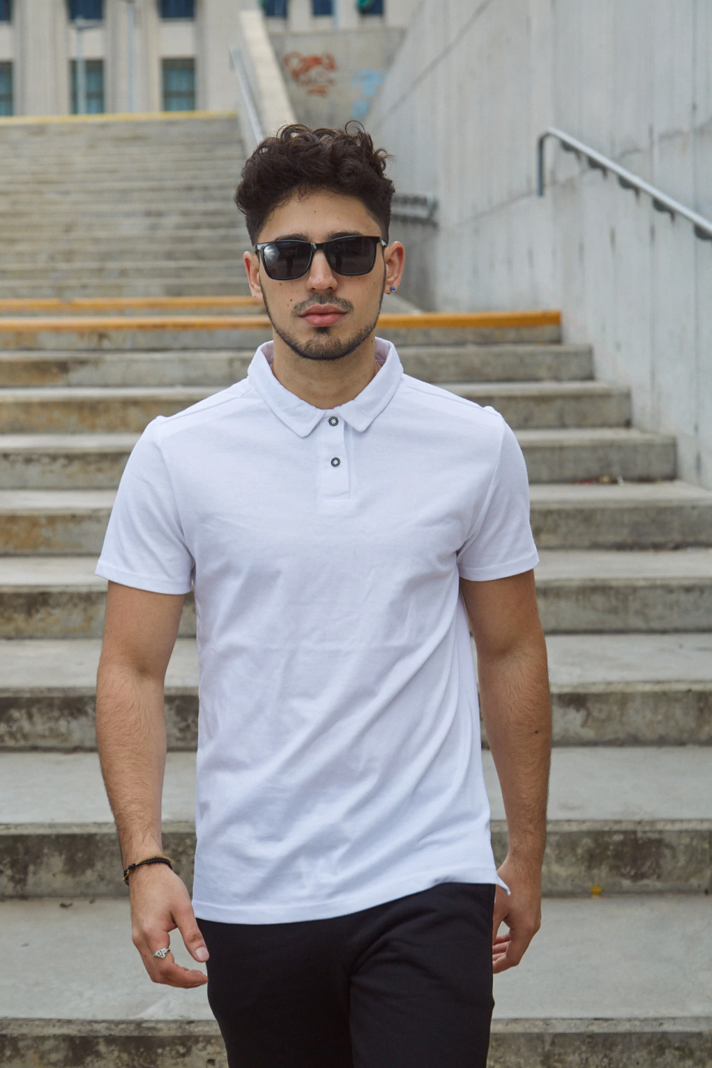 -Chomba con botones en cuello, detalle de corte en la cintura